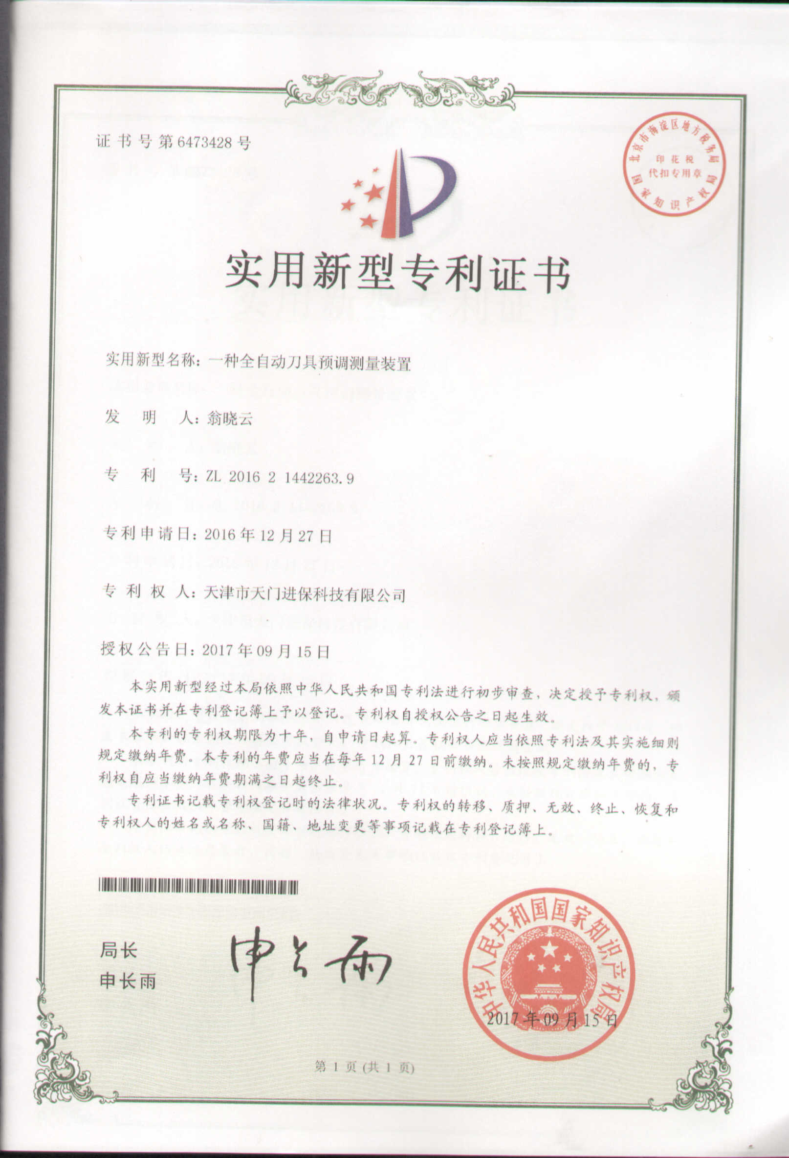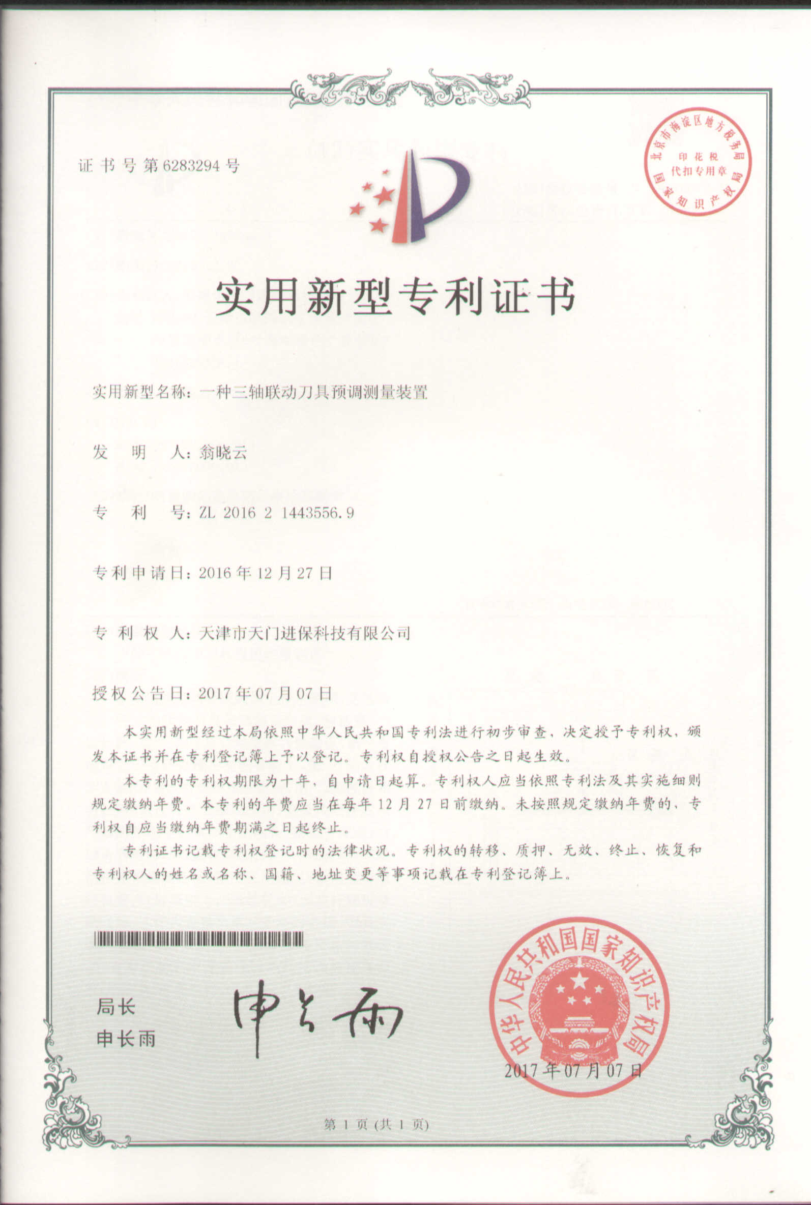 • 全自動(dòng)刀具預(yù)調(diào)測(cè)量?jī)x實(shí)用新型專利